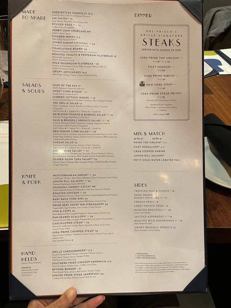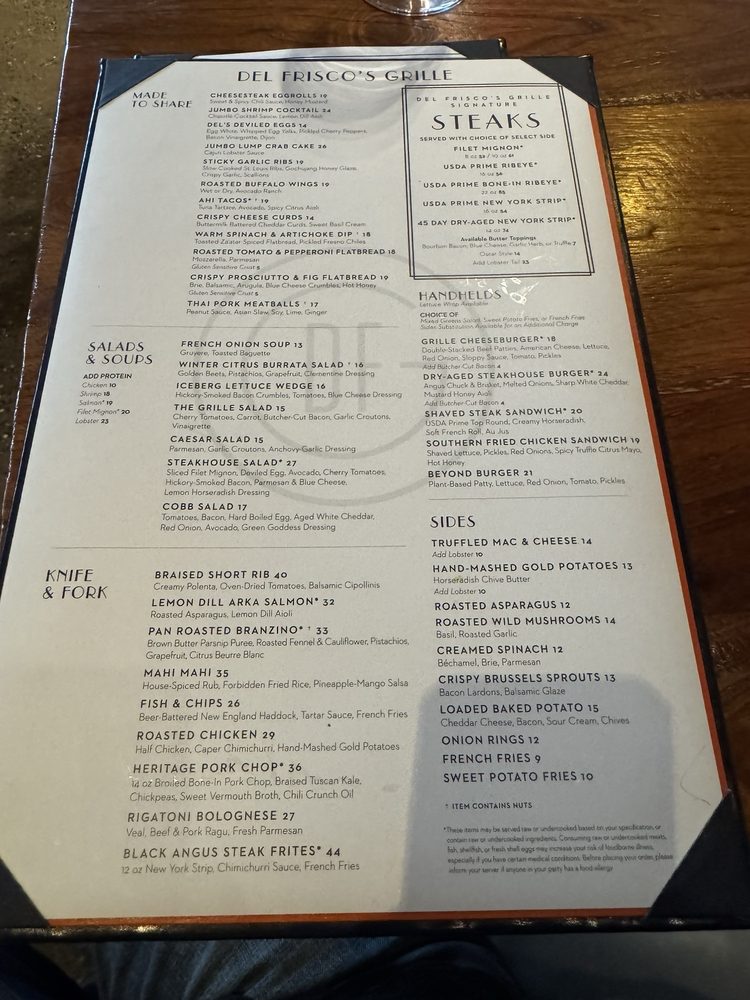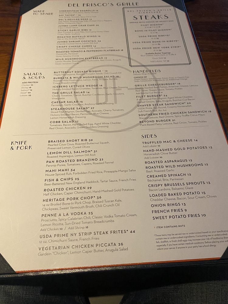 Del Frisco's Grille Hoboken Menu (Update 2025)